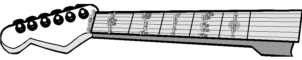 Manchmal gibt es Schwierigkeiten, wenn man zwar die Noten kennt, aber nicht weiß, wo sie auf dem Griffbrett liegen, was sehr wichtig für die Zusammenhänge zwischen einzelnen Tönen und Akkorden ist . Dabei kann man sie sich ganz leicht selbst suchen, wenn man ein paar Sachen weiß: